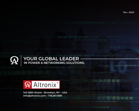 Rev. 0925 FEATURED PRODUCTS YOUR GLOBAL LEADER IN POWER & NETWORKING SOLUTIONS. VIDEO SURVEILLANCE NETWORKING ACCESS CONTROL FIRE 140 58th Street • Brooklyn, NY - USA info@altronix.com • 718.567.8181